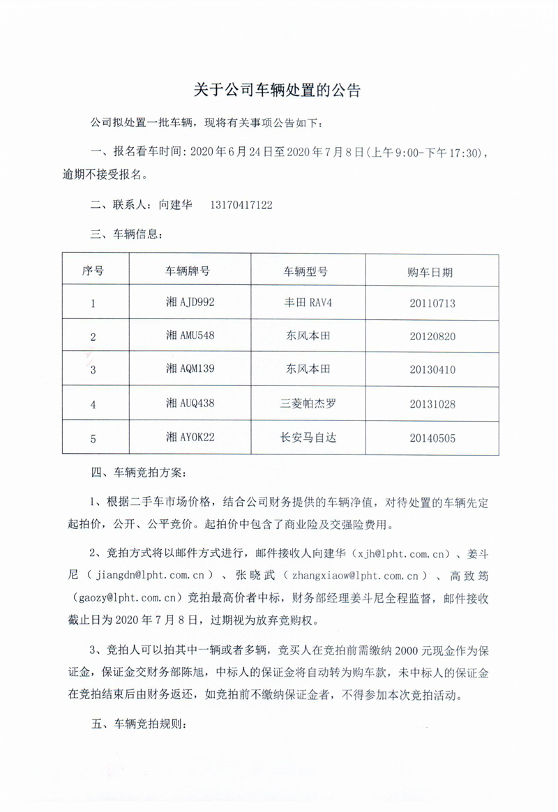 關(guān)于公司車輛處置的公告