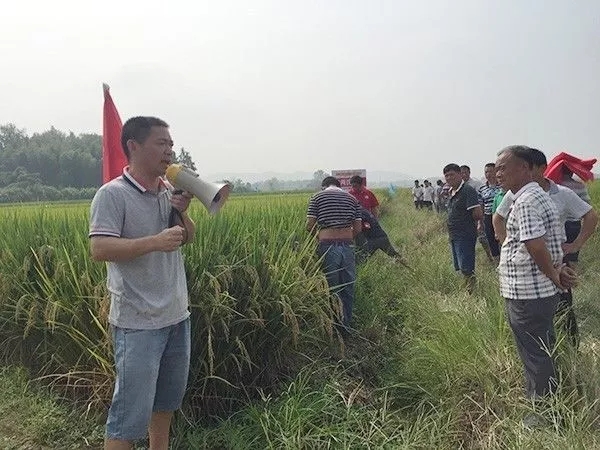 2017年9月24日,上高縣代理商陳總組織開展了隆兩優(yōu)華占大型田間觀摩會。在瀘州鄉(xiāng)的斜西村,設(shè)立了隆兩優(yōu)華占各種栽培模式的示范田百余畝,當(dāng)天到會人數(shù)近百人,場面甚是浩大,會議取得了很好的效果!