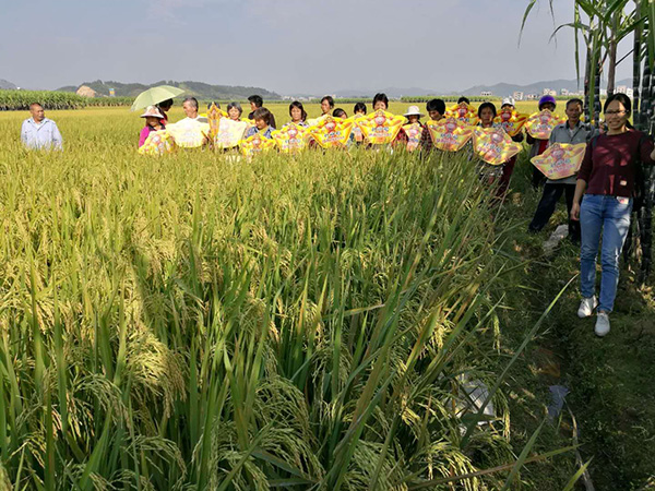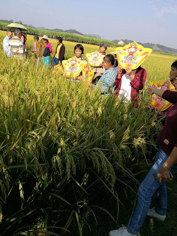 據(jù)零售商黃姐介紹,今年百合鎮(zhèn)共賣種20幾件隆兩優(yōu)1988,大盧村更是爭氣, 在種植水平上遠(yuǎn)超其它村落,省心省力。民風(fēng)純樸的鄉(xiāng)民們笑咪咪的折過一旁的果蔗,熱情地遞過來。接著說,今年到處有病害,但這個品種沒有格外多操心,好品種省心。大家爭相帶路去看隆兩優(yōu)1988的表現(xiàn),看著一片片豐收在即的稻田,喜悅的心情無以言表。