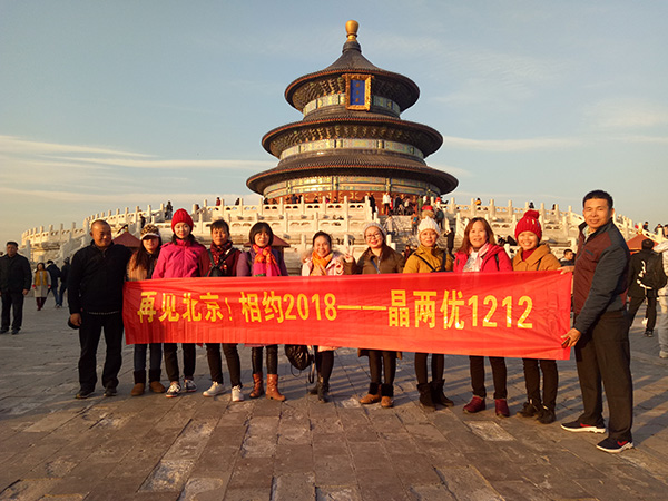 這次旅游培訓(xùn)時(shí)間為12月5日-12月12日,參觀了北京及天津的主要旅游景點(diǎn),雖然北方天氣寒冷也沒有阻擋晶兩優(yōu)1212粉絲們的熱情!