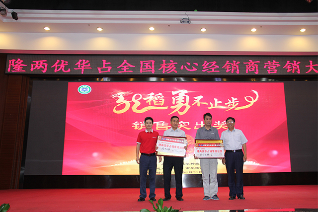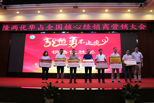 星星之火,可以燎原,一份耕耘,一份收獲!成功不是一個人的故事,隆兩優(yōu)華占自2014年進(jìn)入市場以來,通過公司和各位合作伙伴的有效推廣及隆兩優(yōu)華占自身的優(yōu)異表現(xiàn),一路高歌,銷量穩(wěn)步上升,目前年銷量突破300萬公斤,成為中稻品種的最新標(biāo)桿,實現(xiàn)了農(nóng)戶、渠道、公司共贏的大好局面!為感謝各位合作伙伴的大力支持,本次大會設(shè)立了銷售優(yōu)勝獎、銷售突出獎等幾個獎項共40余位獲得獎勵和表彰。