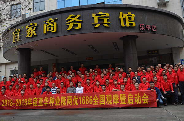 室內(nèi)會(huì)議伊始,由亞華事業(yè)部總經(jīng)理洪祥作題為《不一樣的1686,共享新財(cái)富》的報(bào)告。洪總深入分析當(dāng)前種業(yè)市場(chǎng)狀況,點(diǎn)播種業(yè)之難題、經(jīng)營(yíng)之困惑;同時(shí)告知破局之建議:聚(聚有實(shí)力的公司、聚有市場(chǎng)競(jìng)爭(zhēng)力的品種、聚核心的市場(chǎng)、聚優(yōu)良的服務(wù)和運(yùn)作)。而亞華品牌就是一個(gè)具有強(qiáng)大實(shí)力的平臺(tái),亞華種業(yè)一直秉承“亞華出品,必為精品”的品種理念,從早雜株兩優(yōu)系列,到種業(yè)日不落神話——深兩優(yōu)5814,再到四國(guó)審、超級(jí)稻——隆兩優(yōu)華占的輝煌,亞華種業(yè)以市場(chǎng)的檢驗(yàn)給大家遞交了一份份完美的答卷。超強(qiáng)恢復(fù)系華恢1686是“華占”與“谷梅4號(hào)”雜交,再用其F1與“R608”雜交而來(lái),現(xiàn)在亞華科學(xué)院區(qū)試小組中組配了“隆兩優(yōu)1686”、“晶兩優(yōu)1686”、“瑋兩優(yōu)1686”、“悅兩優(yōu)1686”、“4001s/華恢1686”、“3158s/華恢1686”等一系列具有市場(chǎng)競(jìng)爭(zhēng)力的品種。洪總最后說(shuō)到:“希望大家能夠抓住機(jī)遇、迎接挑戰(zhàn)、再造爆品、共享新財(cái)富”。