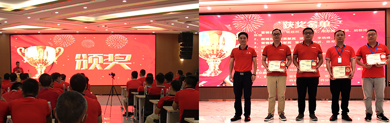 新員工介紹過(guò)后,公司高管分別對(duì)上一年度表現(xiàn)突出的34名員工和4個(gè)大區(qū)頒發(fā)了營(yíng)銷(xiāo)年度優(yōu)秀獎(jiǎng)項(xiàng)。