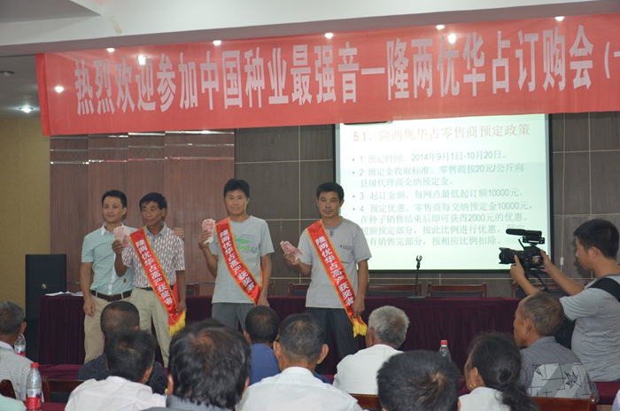 隨后的室內(nèi)會(huì)議里,亞華種業(yè)江西分公司總經(jīng)理谷恩華向大家介紹了隆兩優(yōu)華占的幾大優(yōu)勢(shì)和公司今后幾年的操作思路,并講解了隆兩優(yōu)華占在各地的表現(xiàn)和預(yù)定情況。接著種植示范戶向介紹了種植經(jīng)驗(yàn)和品種優(yōu)勢(shì)?,F(xiàn)場(chǎng)公布估產(chǎn)競(jìng)猜獎(jiǎng)將會(huì)議推向高潮,一共有6位經(jīng)銷(xiāo)商和種植戶獲得估產(chǎn)大獎(jiǎng)。