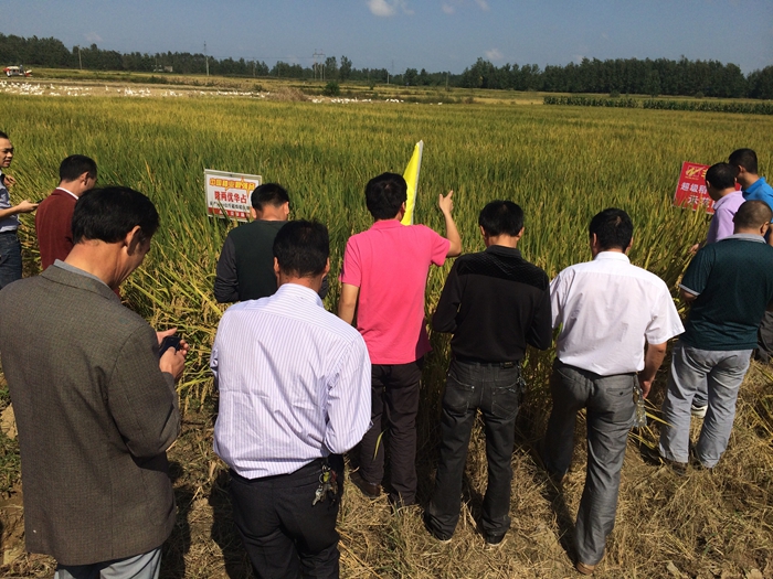 9月21日22日,安徽壽縣代理商劉洋洋在壽縣東邊的雙廟鎮(zhèn)和西邊的保義鎮(zhèn),分別召開了兩場“隆兩優(yōu)華占”零售商現(xiàn)場觀摩會(huì),這兩天連一個(gè)多月不見的太陽都出來捧場。在這兩個(gè)鄉(xiāng)鎮(zhèn)我們分別觀看了“隆兩優(yōu)華占”的空閑田和麥茬田,表現(xiàn)情況都受到前來參會(huì)的零售商大力追捧!在做現(xiàn)場布置時(shí),路過的農(nóng)戶就都停下來到田間查看了品種的分蘗、結(jié)實(shí)率等情況,還將品種的名稱和零售店的號(hào)碼寫下來,說:“這個(gè)品種非常不錯(cuò),明年要多種點(diǎn)。”