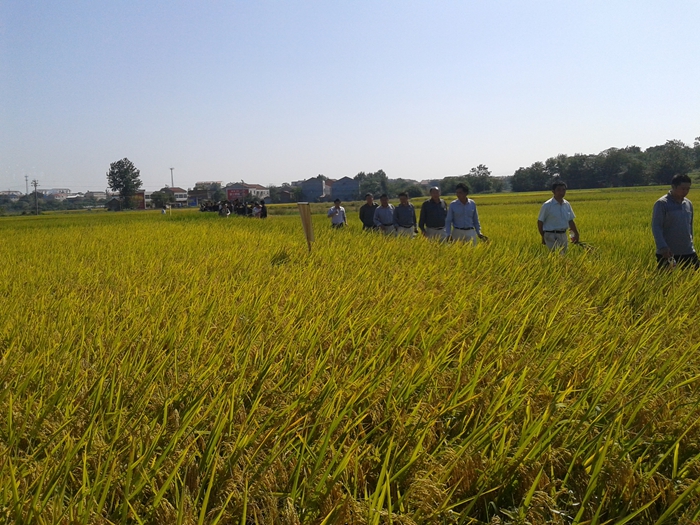 2014年9月21日,湖北孝昌奧邦公司組織60名零售商、種田大戶觀摩了深兩優(yōu)5183的示范田。