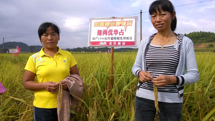 2014年9月20號(hào),鉛山縣代理商徐國(guó)經(jīng)在開完紫溪鎮(zhèn)農(nóng)戶預(yù)定會(huì)議后,緊接著又在汪二鎮(zhèn)的隆兩優(yōu)華占示范田里又加了一把燎原烈火。當(dāng)天上午八點(diǎn)半,汪二鎮(zhèn)洲上村就集結(jié)了零售商、農(nóng)戶共百余人。在這金色的稻田里,參觀人員的隊(duì)伍也在田間排出了一條長(zhǎng)龍。看著這金燦燦的滿田稻穗,農(nóng)戶的心情也格外興奮,有些農(nóng)戶自發(fā)地拿著龍稻的彩旗在田間自發(fā)留影。大家俯首仔細(xì)觀看,有的數(shù)穗粒,有的數(shù)分蘗,喜悅當(dāng)中洋溢出了滿滿的期望,其中有人說,這樣的田塊至少割1700斤。農(nóng)戶紛紛稱贊著這連片的隆兩優(yōu)華占,都說沒見過這么好的成片田塊,零售商們當(dāng)場(chǎng)決定,明年要大賣隆兩優(yōu)華占,農(nóng)民豐收,我們才高興才有面子。