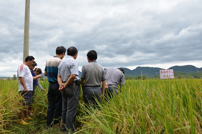 湖北遠(yuǎn)安縣是稻瘟病的高發(fā)區(qū),為了展示中國龍稻-隆兩優(yōu)華占的超高抗特性,亞華種業(yè)特地選擇在此縣進(jìn)行了隆兩優(yōu)華占示范工作。2014年9月19日,亞華種業(yè)代理商汪雄組織了來自各鄉(xiāng)鎮(zhèn)的12位重點(diǎn)零售商,觀摩了該示范田。