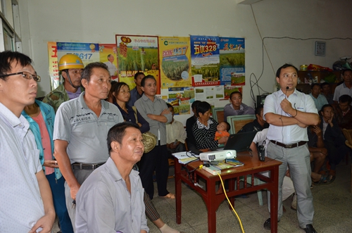 11點整,田間現(xiàn)場觀摩完,大家一起返回了集合點的房屋,便開始了室內(nèi)的講解。江西分公司總經(jīng)理谷恩華給大家介紹了品種的選育過程、歷年的區(qū)試情況、各地的優(yōu)異表現(xiàn)、種衣劑的優(yōu)勢、種植的技術(shù)及注意事項,農(nóng)民朋友則聚精會神的聆聽,不時的點頭表示贊同,門外很站滿了不少人前來駐足觀看,好不熱鬧。 一句話來概括那就是:種龍稻,得豐收!