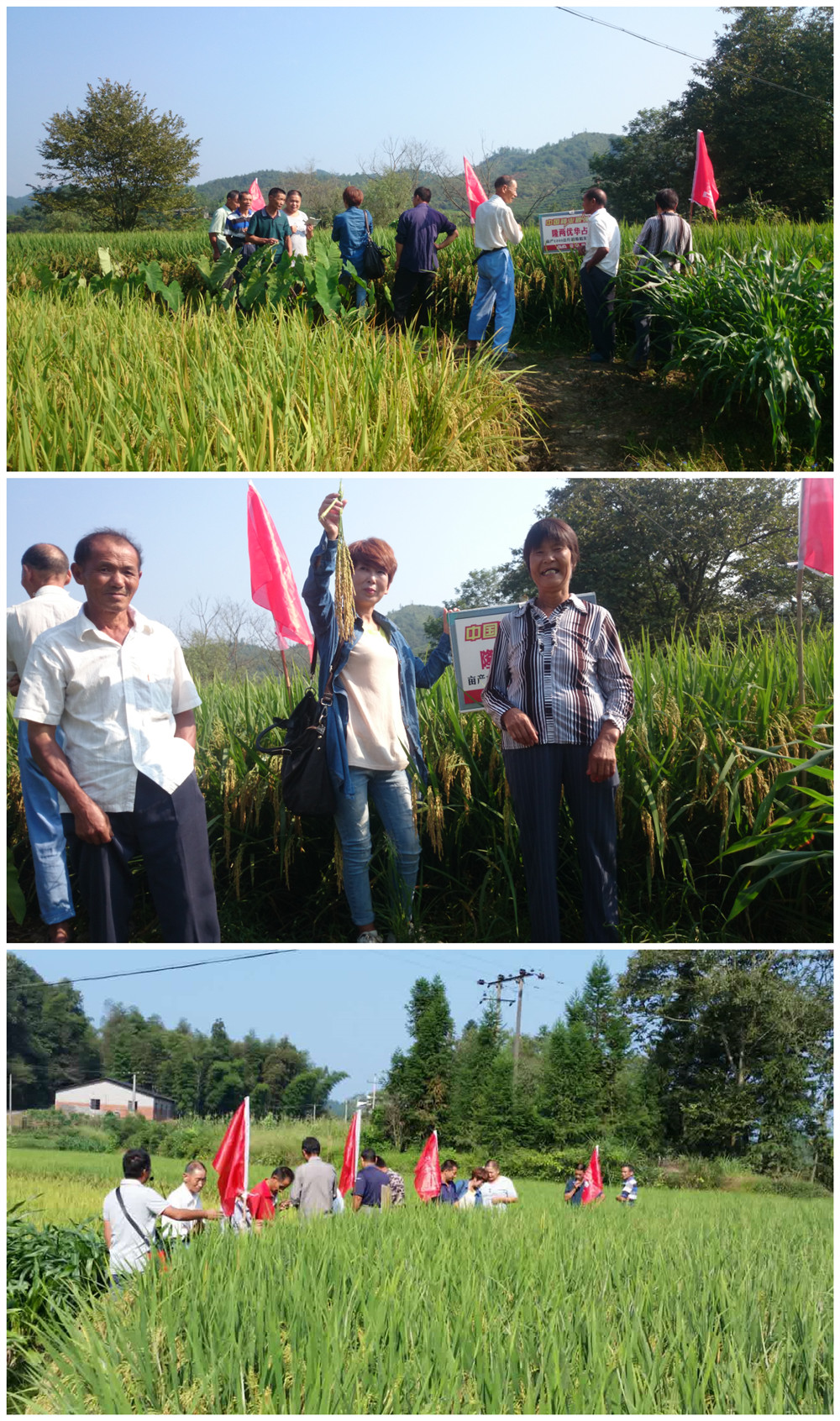 2015年9月9日,在婺源縣思口鎮(zhèn)成功召開中國龍稻——隆兩優(yōu)華占觀摩會。初秋的婺源早晨透漏出一絲涼意,一大早來自思口鎮(zhèn)附近的零售商和種田大戶共20余人陸陸續(xù)續(xù)來到零售店,期待今天能一飽眼福,看看中國龍稻-隆兩優(yōu)華占令人贊嘆的表現(xiàn)。