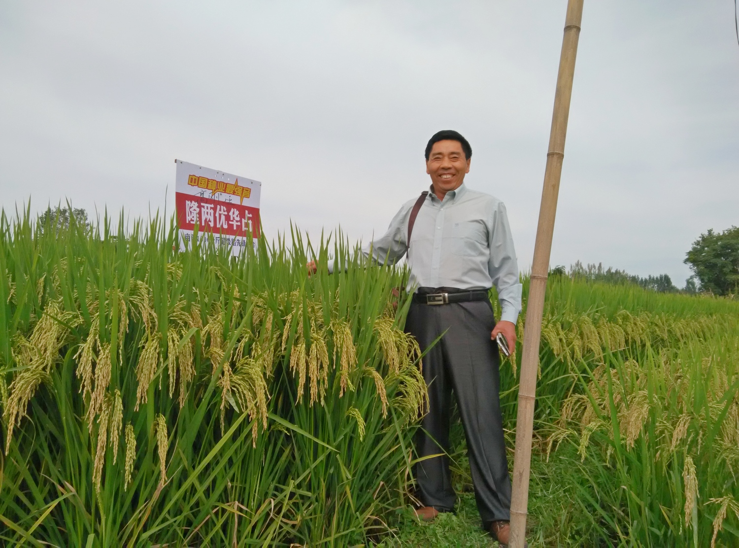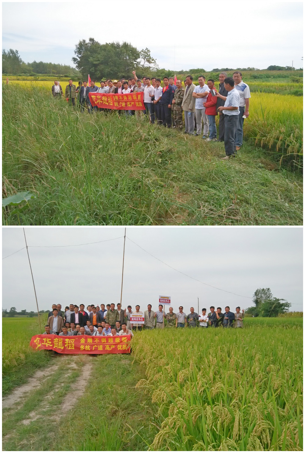 2015年9月13日,在安徽省明光市司巷鎮(zhèn),隆兩優(yōu)華占黃燦燦的田間迎來了四十多位零售商和種田大戶駐足欣賞。滿田飽滿的稻穗整齊劃一挺立著,等待眾人檢閱。
