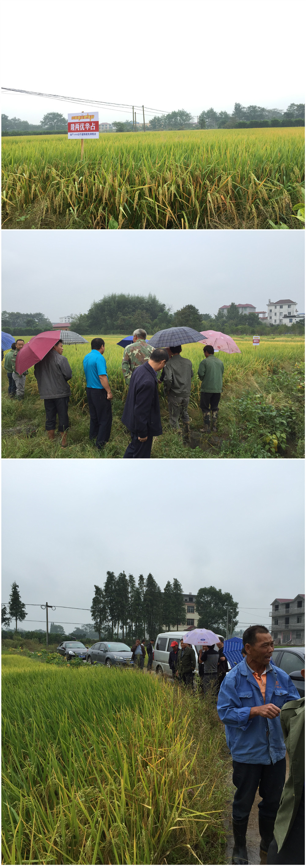 2015年10月5日,天空飄著細雨,這依然無法阻擋大家看禾的腳步——只因為隆兩優(yōu)華占。行走在田間,無論是小面積種植還是大面積連片種植,隆兩優(yōu)華占表現(xiàn)同樣優(yōu)秀。