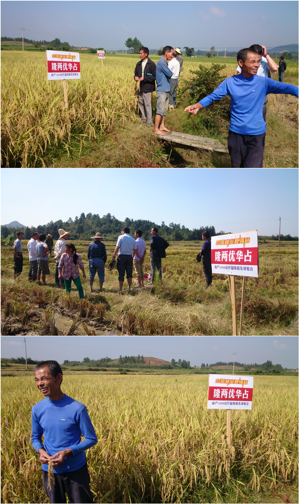 這片隆兩優(yōu)華占連片種植田塊有60多畝,由新安村農(nóng)戶王仕高(13755955705)種植,已經(jīng)開始陸續(xù)收割了,本次收割一丘0.7畝的田塊,收獲濕谷1290斤,合一畝1842斤,由于收割較晚,谷子水分含量低,但農(nóng)戶依然要求按10%的水分扣除,如此折合干谷畝產(chǎn)依然達1657斤。看著一袋又一袋的谷子裝好,農(nóng)戶臉上露出了滿意的笑容。王仕高在現(xiàn)場給大家講:“我這兩天收了幾十畝隆兩優(yōu)華占了,濕谷最少都有1600斤,這個谷子很沉,比我去年種的品種增產(chǎn)不少。”現(xiàn)場看過的農(nóng)戶也都對隆兩優(yōu)華占贊不絕口,都表示明年一定首選隆兩優(yōu)華占,這么好的品種,不種那是一大損失??!