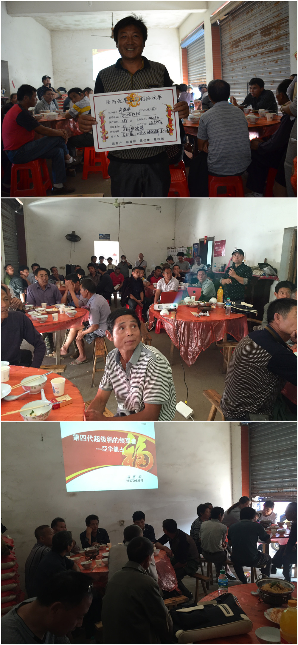測(cè)產(chǎn)結(jié)束后,開(kāi)展了室內(nèi)會(huì)議,代理商朱保華獎(jiǎng)勵(lì)了競(jìng)猜結(jié)果最接近實(shí)測(cè)數(shù)據(jù)的三名種植戶——現(xiàn)金紅包!亞華種業(yè)江西分公司總經(jīng)理谷恩華介紹到:亞華龍占具有高產(chǎn)、穩(wěn)產(chǎn)的特征特性。并且還分享了全省其他地區(qū)亞華龍占的種植表現(xiàn),并對(duì)本年度“不預(yù)定,不供種”的預(yù)定政策進(jìn)行了講解。