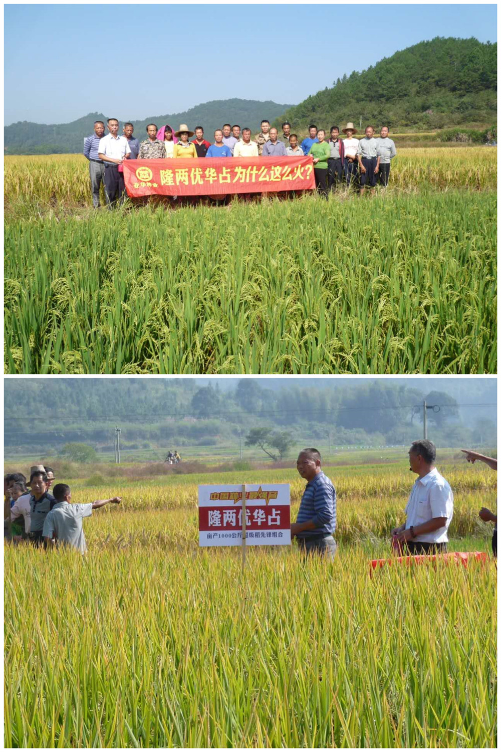 隆兩優(yōu)華占在江西樂安推廣以來,一直受到廣大零售商和種植戶的追捧,在樂安做一季早稻、一季中稻和一季晚稻種植都取得了非常好的成績。2015年10月19日,在樂安縣又召開了隆兩優(yōu)華占做雙季晚稻的觀摩會,20余名零售商和種田大戶一同前來一睹隆兩優(yōu)華占的風(fēng)采。