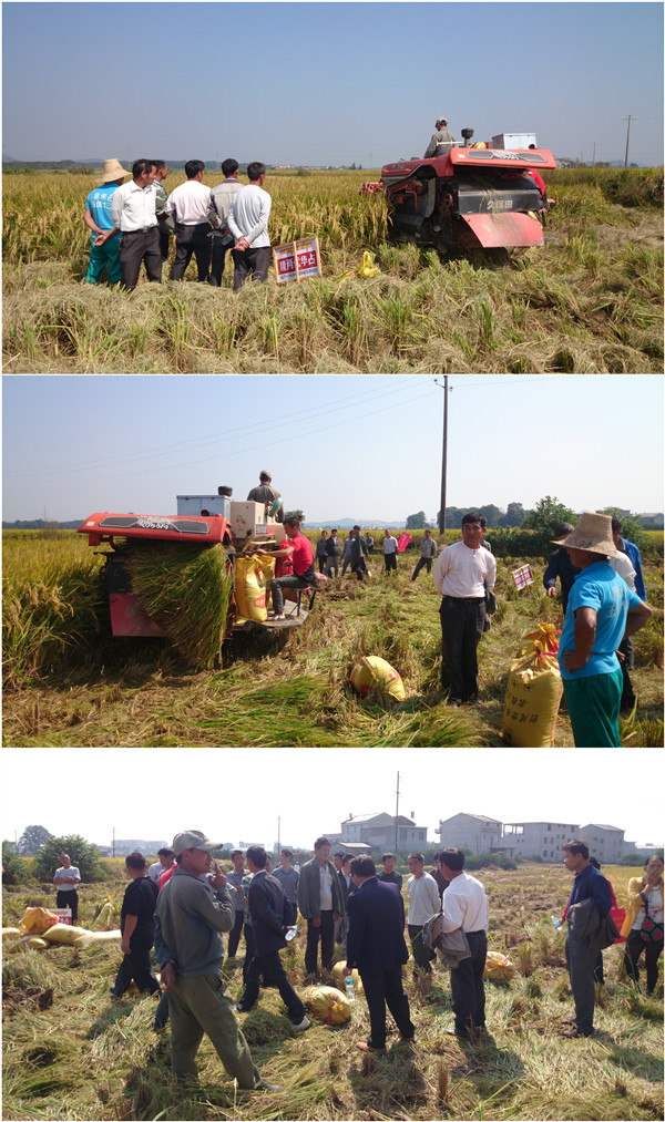 2015年10月20日,在金溪縣代理商的組織下,來自各鄉(xiāng)鎮(zhèn)60余名零售商和種田大戶齊聚滸灣鎮(zhèn)文家村,一睹隆兩優(yōu)華占豐收的盛況。
