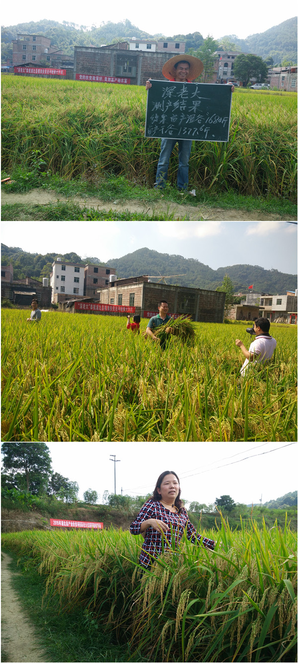 按照縣政府“扶誰(shuí)、怎么扶、誰(shuí)來(lái)扶”的指導(dǎo)精神,浦北縣良晨農(nóng)業(yè)合作社選擇了在貧困人口集中的浦北縣平睦鎮(zhèn)推廣高產(chǎn)好吃的優(yōu)良品種“深老大”取得了良好的經(jīng)濟(jì)效應(yīng)和社會(huì)效應(yīng)。11月5日,在這個(gè)送秋迎冬的日子,縣委常委、副縣長(zhǎng)、“美麗廣西”鄉(xiāng)村建設(shè)(扶貧)工作隊(duì)隊(duì)長(zhǎng)李國(guó)君博士,縣扶貧辦領(lǐng)導(dǎo)馮民,平睦鎮(zhèn)秦鎮(zhèn)長(zhǎng)、黃書(shū)記及縣貧困村主任、書(shū)記,各鄉(xiāng)鎮(zhèn)農(nóng)技服務(wù)推廣站負(fù)責(zé)人頂著烈日,不顧幾十公里山路顛簸,親臨“深老大”測(cè)產(chǎn)驗(yàn)收現(xiàn)場(chǎng),評(píng)估超級(jí)稻“深老大”在產(chǎn)業(yè)扶貧中的經(jīng)濟(jì)效應(yīng)及社會(huì)效應(yīng)。