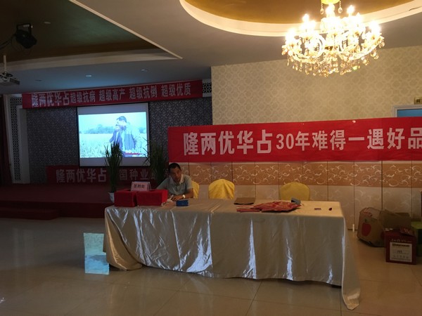 2016年8月6號,湖南亞華種子有限公司湖北分公司姜文嘉總經(jīng)理帶領(lǐng)區(qū)域經(jīng)理黃開文和張玉鵬,與荊門代理商龍飛在五里鋪鎮(zhèn)子豪大酒店召集當(dāng)?shù)亓闶凵膛c種植大戶等近200人,召開了2016—2017隆兩優(yōu)華占湖北省預(yù)訂會。