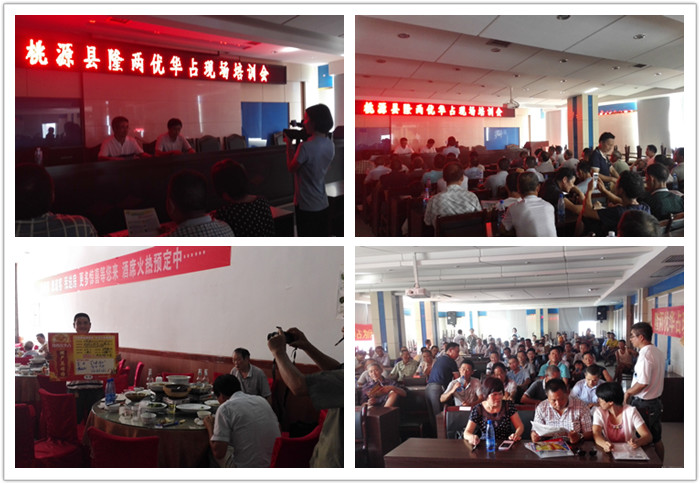在室內(nèi)會(huì)場(chǎng)上,鄉(xiāng)鎮(zhèn)經(jīng)銷商及種植大戶代表紛紛發(fā)言,分享了在推廣和種植過程中的經(jīng)驗(yàn)及品種認(rèn)識(shí),簡(jiǎn)單的說就是種的放心、看著舒心。桃源縣興隆米業(yè)負(fù)責(zé)人針對(duì)現(xiàn)行的糧食收購(gòu)形式進(jìn)行分析和講解,重點(diǎn)突出了再生稻米質(zhì)的優(yōu)勢(shì),并表示愿意對(duì)隆兩優(yōu)占客戶再生稻第二季稻谷進(jìn)行合同式收購(gòu),切實(shí)保證高產(chǎn)情況下農(nóng)民的收入。會(huì)上,亞華種業(yè)區(qū)域經(jīng)理覃兵從公司及全國(guó)推廣的角度,介紹了隆兩優(yōu)華占的品種優(yōu)勢(shì)及再生稻栽培關(guān)鍵技術(shù)。代理商結(jié)合公司政策,鼓勵(lì)農(nóng)戶積極預(yù)定,切實(shí)讓種植大戶們享受到預(yù)定優(yōu)惠,讓更多的農(nóng)戶種上好品種!。
