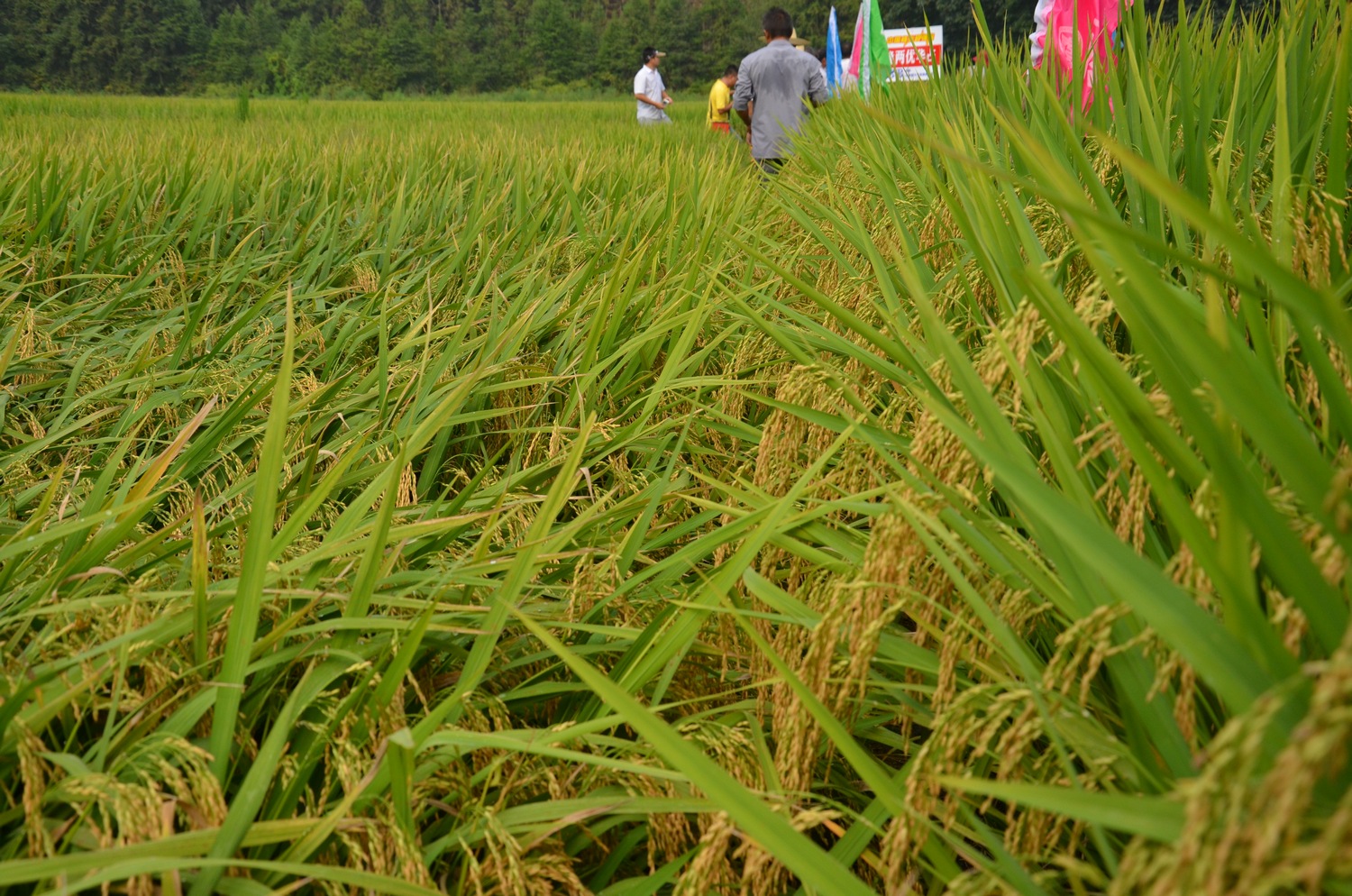 一到田間,還不等介紹,大伙紛紛到田間仔細(xì)考察起隆兩優(yōu)華占,超高的結(jié)實率和有效穗讓眾人連連稱贊,經(jīng)歷了連續(xù)的高溫天氣,很多品種的結(jié)實率不足五六成,這也使得隆兩優(yōu)華占耐高溫的特性顯露無疑,結(jié)實率超過85%,田間平均有效穗17穗,這樣的表現(xiàn)想不超產(chǎn)都難啊。在觀摩田的隔壁是另一個在七琴銷售很好的華占系列品種,但是已經(jīng)出現(xiàn)倒伏,結(jié)實率也不是很高,與隆兩優(yōu)華占挺拔的身姿形成了鮮明的對比。來自七琴的種田戶鄧?yán)习搴蠡诘恼f:“今年沒種隆兩優(yōu)華占真的損失慘重,我種的其他品種至少每畝要少收200-300斤,這一下我就損失了幾萬塊啊”。所以,選擇隆兩優(yōu)華占,就是選擇豐收。