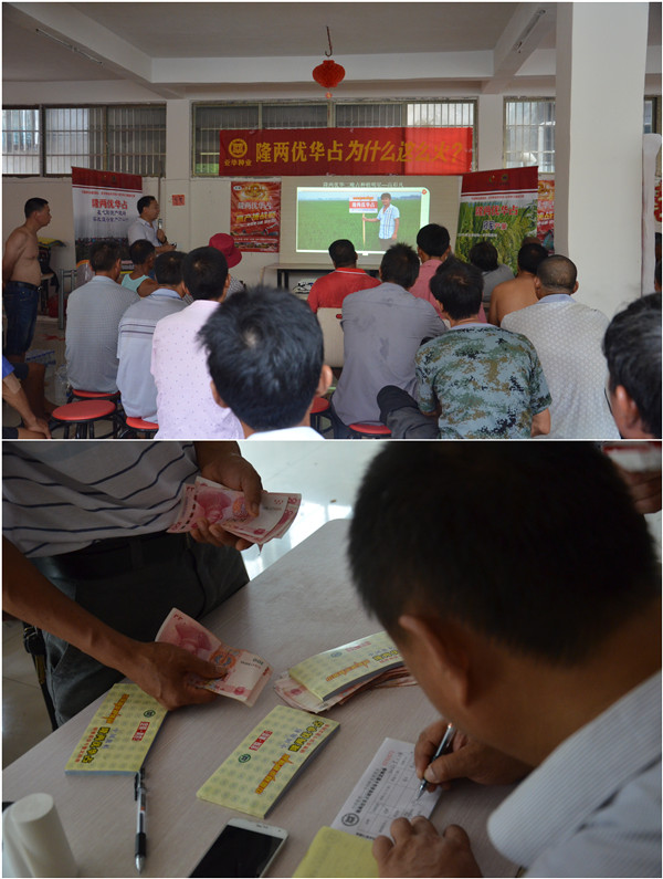 隨后在室內(nèi)會議上,江西分公司谷總就隆兩優(yōu)華占這一年在各地的表現(xiàn)做了介紹,針對七琴一季早+再生稻的大面積推廣,也做了詳細(xì)的技術(shù)指導(dǎo),在種田大戶間引起了強(qiáng)烈的反響,紛紛表示隆兩優(yōu)華占將是明年的首選。最后現(xiàn)場訂種超過2500斤,相信明年會有更多的種植戶會被隆兩優(yōu)華占所征服!