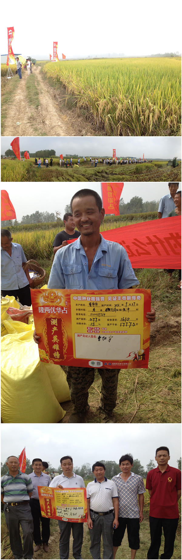 上午10時(shí)許,這里的田間地頭彩旗飄揚(yáng),人頭攢動(dòng)。中國(guó)龍稻——“隆兩優(yōu)華占”田間實(shí)測(cè)產(chǎn)活動(dòng)如約開(kāi)展,一百三十多人現(xiàn)場(chǎng)監(jiān)督見(jiàn)證了0.77畝實(shí)收濕谷1610斤,測(cè)得畝產(chǎn)濕谷2090.9斤,扣除15%水分,實(shí)測(cè)干谷1777.3斤/畝,現(xiàn)場(chǎng)參會(huì)人員無(wú)不對(duì)隆兩優(yōu)華占的表現(xiàn)心悅誠(chéng)服,紛紛表示由種田大戶(hù)粗放式管理在極端天氣下獲得這樣高的產(chǎn)量,真是不可思議。