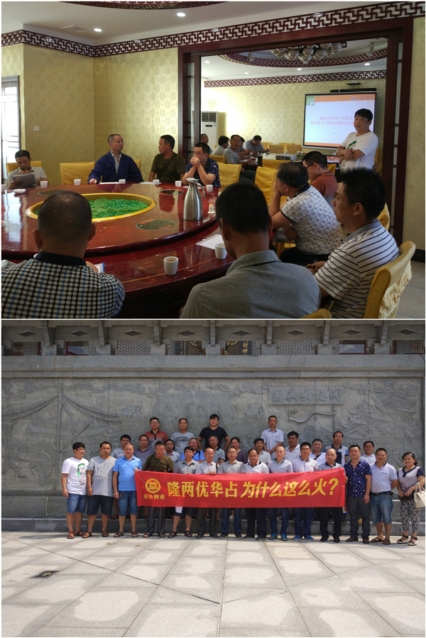接著安化縣隆兩優(yōu)華占代理商組織了座談討論會。首先由湖南亞華種子有限公司湘北大區(qū)康經(jīng)理就隆兩優(yōu)華占的育種由來、隆兩優(yōu)華占現(xiàn)階段的品種影響及后續(xù)趨勢、隆兩優(yōu)華占預(yù)定的運(yùn)作思路、隆兩優(yōu)華占的各地表現(xiàn)圖片及新聞報(bào)道視頻向與會代表做了PPT的介紹。接著安化隆兩優(yōu)華占代理商韓總就隆兩優(yōu)華占預(yù)定的具體操作細(xì)則及相關(guān)政策做了介紹,同時做了總結(jié)性的發(fā)言并說道:具備良好抗性的隆兩優(yōu)華占非常適合在安化縣種植,而且豐產(chǎn)性好,米質(zhì)優(yōu),希望大家能大力推廣這么好的品種。