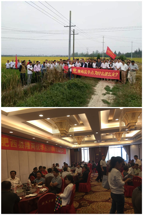 2016年9月21號(hào)由合肥潤(rùn)禾農(nóng)業(yè)科技有限公司組織肥西縣近百人的零售商及種田大戶,浩浩蕩蕩的趕到位于四豐公路旁的中國(guó)龍稻--隆兩優(yōu)華占示范田。