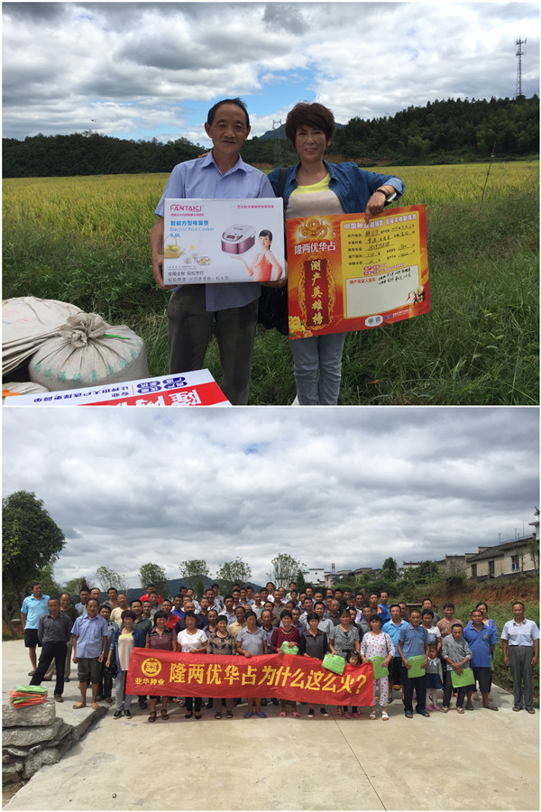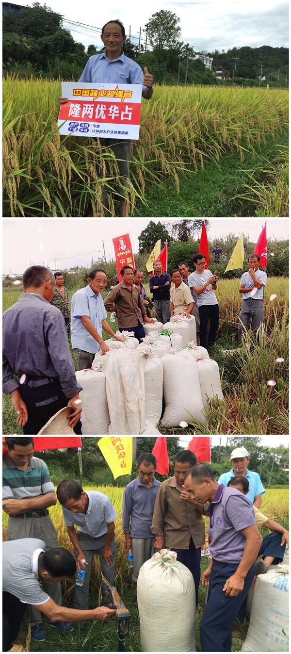 青瓦白墻檐下屋,不知曲巷深何處。幸得美景雨后出,更有龍稻入畫圖。在被喻為最美鄉(xiāng)村的婺源,隆兩優(yōu)華占憑借出色的品種優(yōu)勢,在今年這種持續(xù)高溫條件下,仍舊表現(xiàn)優(yōu)異,成就了婺源的一道獨(dú)立的風(fēng)景線。2016年9月17日,婺源縣各鄉(xiāng)鎮(zhèn)零售商以及種田大戶八十余人齊聚賦春鎮(zhèn)盤坑村,共同目睹了隆兩優(yōu)華占美麗風(fēng)采,并見證了隆兩優(yōu)華占實(shí)割高產(chǎn)喜獲豐收。