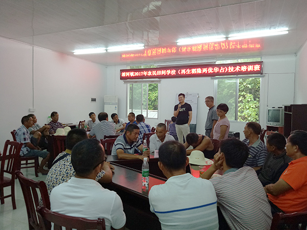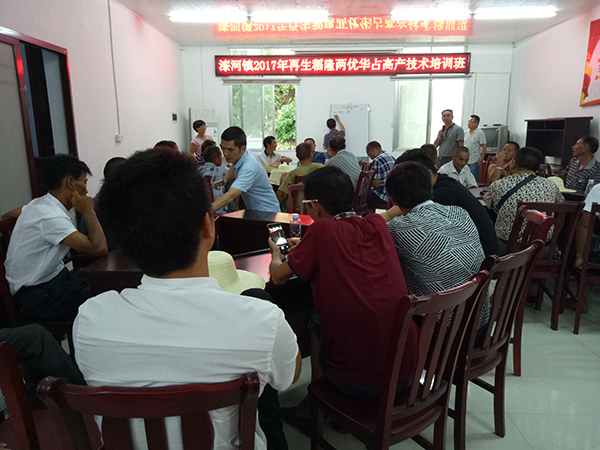 田間觀摩完畢后,在漆河鎮(zhèn)農(nóng)技站工作人員的組織下,我們一起來(lái)到了農(nóng)技站會(huì)議室。農(nóng)技站站長(zhǎng)主持隆兩優(yōu)華占高產(chǎn)農(nóng)技培訓(xùn)會(huì),對(duì)隆兩優(yōu)華占再生稻栽培的技術(shù)進(jìn)行授課,同時(shí)對(duì)稻蝦共生進(jìn)行了相關(guān)講解以及對(duì)隆兩優(yōu)華占的高度肯定。