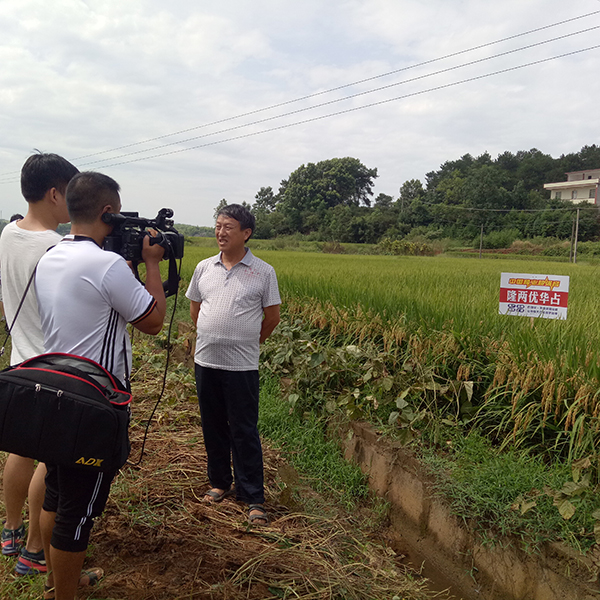 該基地是在常寧蓬塘鄉(xiāng)楊塘村,是常寧市農(nóng)業(yè)技術(shù)推廣中心承擔(dān)省再生稻211工程的示范片,統(tǒng)一種植我省再生稻主推品種隆兩優(yōu)華占,整片示范田是統(tǒng)一的技術(shù)指導(dǎo)和田間管理,在經(jīng)歷了今年7月份的高溫考驗(yàn)下,當(dāng)前大田表現(xiàn)青枝活桿、結(jié)實(shí)率高、劍葉挺拔、無倒伏現(xiàn)象。在大家見證下,進(jìn)行了小面積測(cè)產(chǎn),測(cè)產(chǎn)結(jié)果達(dá)940公斤/畝,初步確保隆兩優(yōu)華占一季加再生稻畝產(chǎn)超1000公斤的目標(biāo)產(chǎn)量。常寧市電視臺(tái)對(duì)本次會(huì)議進(jìn)行了全程報(bào)道,采訪了楊塘村劉書記,劉書記表示該品種在去年小面積種植表現(xiàn)很好,今年就大面積種植該品種,包括200多畝隆兩優(yōu)華占示范片,預(yù)計(jì)頭季平均畝產(chǎn)可達(dá)700公斤以上,當(dāng)天現(xiàn)場(chǎng)在高產(chǎn)丘塊測(cè)產(chǎn)產(chǎn)量高達(dá)940公斤。