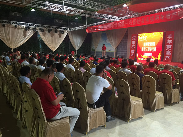 最后,殷總為大家介紹了“財(cái)神稻”隆兩優(yōu)1988在固始兩年來的銷售情況,以及兩年來“財(cái)神稻”隆兩優(yōu)1988的田間表現(xiàn),在高溫情況下,結(jié)實(shí)率連續(xù)兩年依然在90%以上,真正做到了災(zāi)年不減產(chǎn),豐年更高產(chǎn)。殷總表示跟緊公司步伐,幾年內(nèi)將“財(cái)神稻”隆兩優(yōu)1988做成固始縣的大品種,乃至全國的大品種!