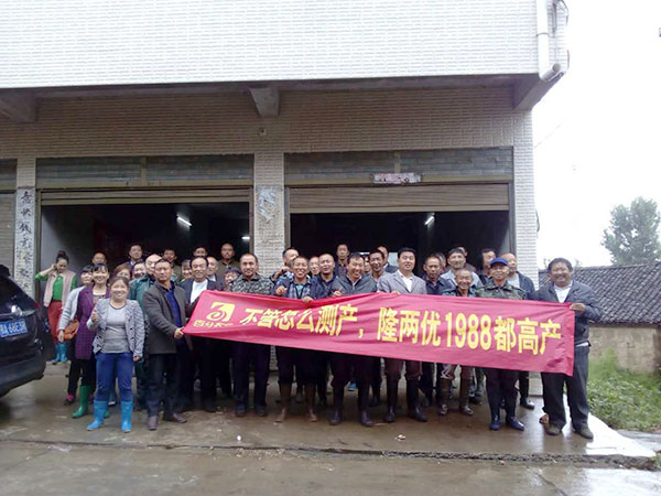 2017年9月2日,在湖北廣水蔡河鎮(zhèn)黃土關(guān)隆兩優(yōu)1988示范田邊,迎來了由廣水代理商陳總組織的種植大戶合觀摩團。