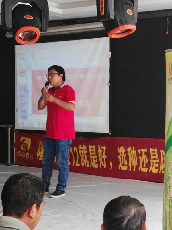 12點整,進行室內(nèi)會議。會上,天門江總首先發(fā)言,江總對隆王稻在全市各個布點示范田的實際大田情況進行了介紹,不同播期,不同地區(qū)的隆王稻表現(xiàn)都十分出色,是一個真真正正的好品種!接下來,亞華百分農(nóng)業(yè)唐經(jīng)理發(fā)言,唐經(jīng)理主要介紹了品種特征特性以及高產(chǎn)栽培技術。緊接著,百分農(nóng)業(yè)湖北大區(qū)魏總對公司大品種、大品牌的運作思路以及未來規(guī)劃進行了精彩發(fā)言。