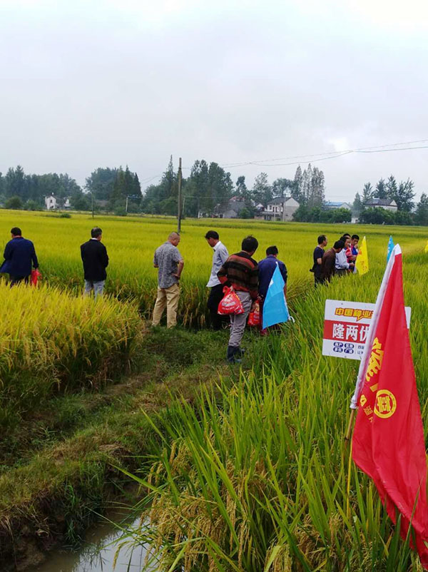 2017年9月11號(hào),在肥西縣山南區(qū)域迎來(lái)了一場(chǎng)零售商及種植大戶隆兩優(yōu)華占觀摩會(huì)。伴隨著絲絲的秋風(fēng),大家10點(diǎn)準(zhǔn)時(shí)來(lái)到了插滿隆兩優(yōu)華占旗子的田塊中?,F(xiàn)場(chǎng)氣氛熱鬧,由亞華安徽分公司營(yíng)銷(xiāo)經(jīng)理劉向明給零售商及大戶進(jìn)行田間講解,主要包括如何防止病蟲(chóng)害、如何施肥、如何有效的管理田塊。介紹完之后,有好多大戶去到隆兩優(yōu)華占田里數(shù)起了水稻分蘗數(shù)、有效穗粒、結(jié)實(shí)率等。他們的臉上露出了驚訝的表情,今年那么高的溫度這個(gè)稻子絲毫沒(méi)有受到影響。隨后大家表示,明年終于可以種上耐高溫、抗倒伏、超抗病、米質(zhì)優(yōu)的好品種了。